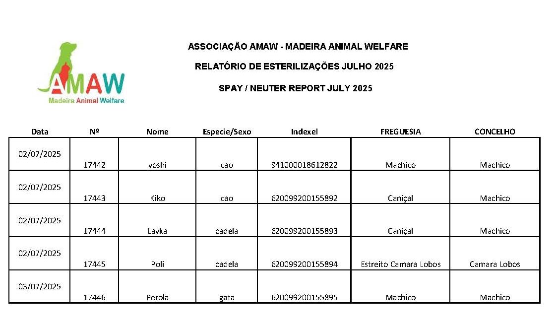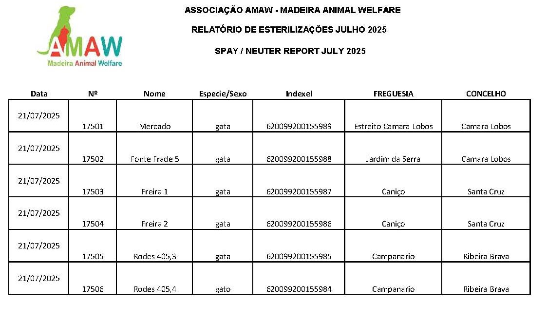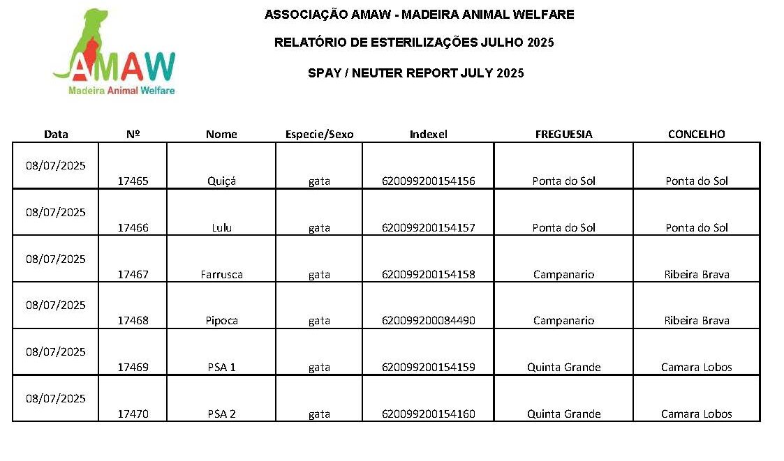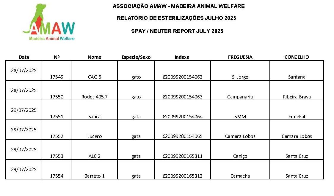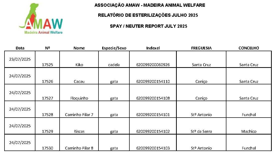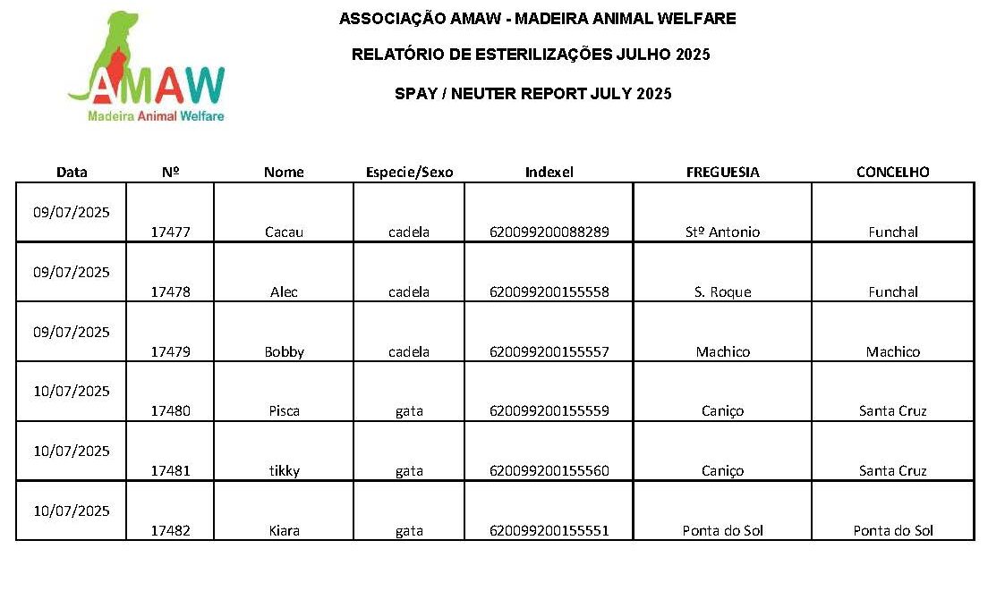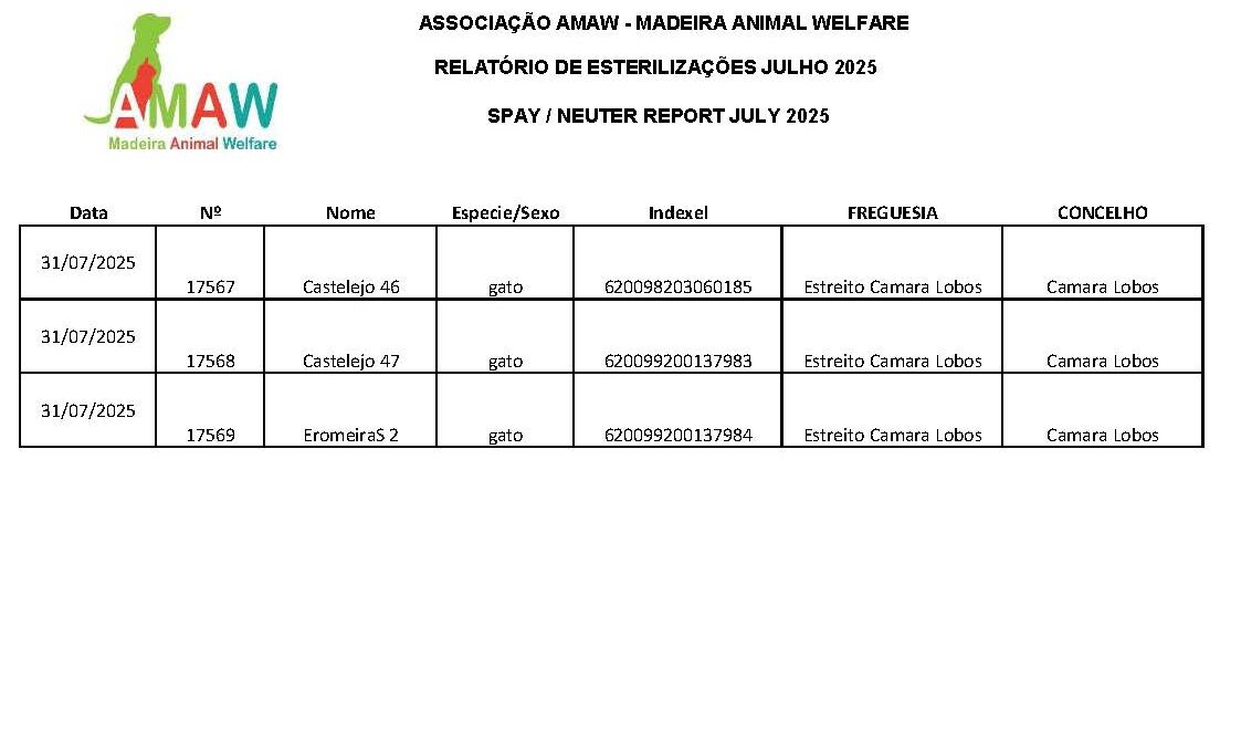 Home > Relatórios de Esterilizações 2025 > Relatório de Esterilizações Julho 2025