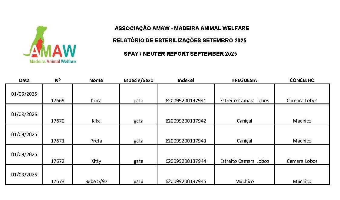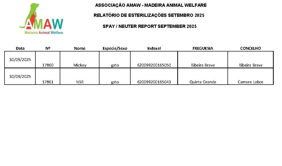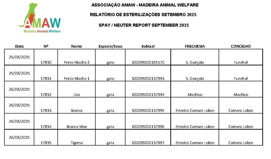 Home > Relatórios de Esterilizações 2025 > Relatório de Esterilizações Setembro 2025
